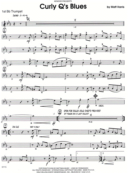 Zusatzinfo/Inhalt This modern blues chart for advancing groups, named after the composer's Labradoodle dog, is sure to sustain listener and player interest. Ranges are limited and all melodies are shared equally. Solo changes are over a 12-bar 1-4-5 blues based on suspended chords instead of dominant 7th chords. This chart allows for a looser rhythm section feel, thus emulating the Charles Mingus style. A guitar chord chart by Jim Greeson is included in each set.
