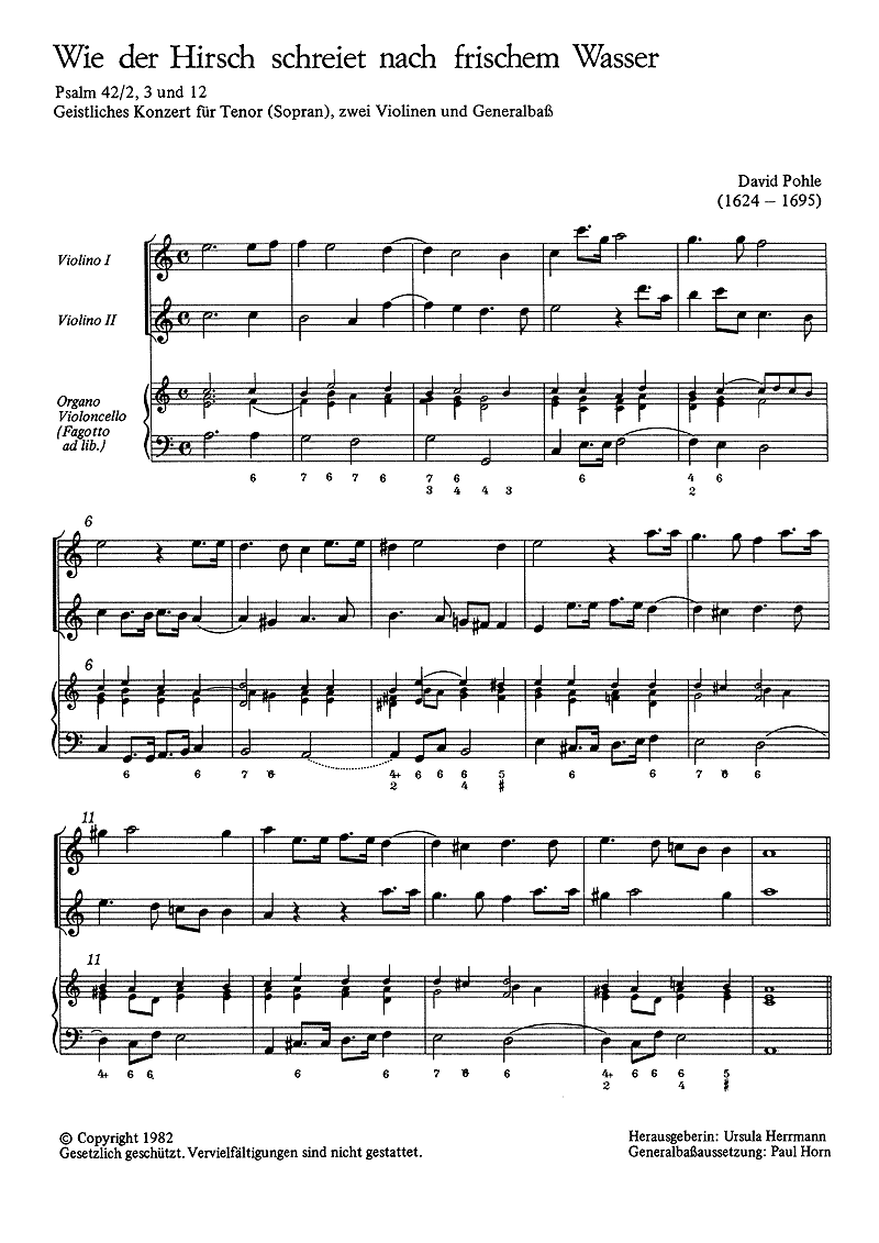 Wie der Hirsch schreiet nach frischem Wasser (Solo T; (; S; ); 2 Violinen; Generalbass), Partitur