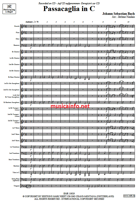 Passacaglia in C - hier klicken Passacaglia in C (Blasorchester), Partitur und Stimmen