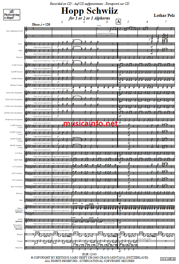 Hopp Schwiiz - hier klicken Hopp Schwiiz (Blasorchester; oder; Fanfarenorchester; Alphorn; (Gb)), Partitur und Stimmen