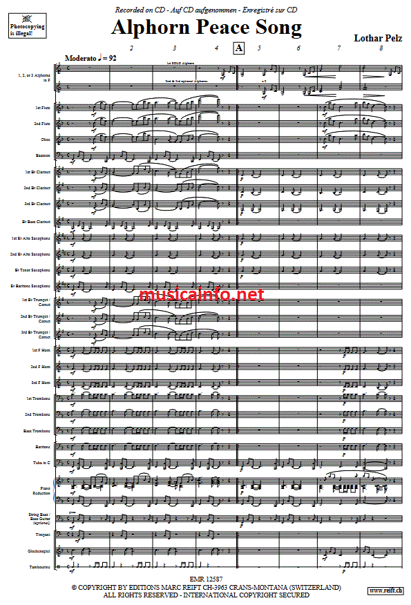 Alphorn Peace Song - hier klicken Alphorn Peace Song (Blasorchester; oder; Fanfarenorchester; Alphorn; (F)), Partitur und Stimmen