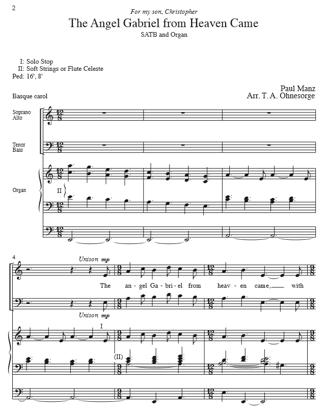 Angel Gabriel from Heaven Came, The - Notenbeispiel