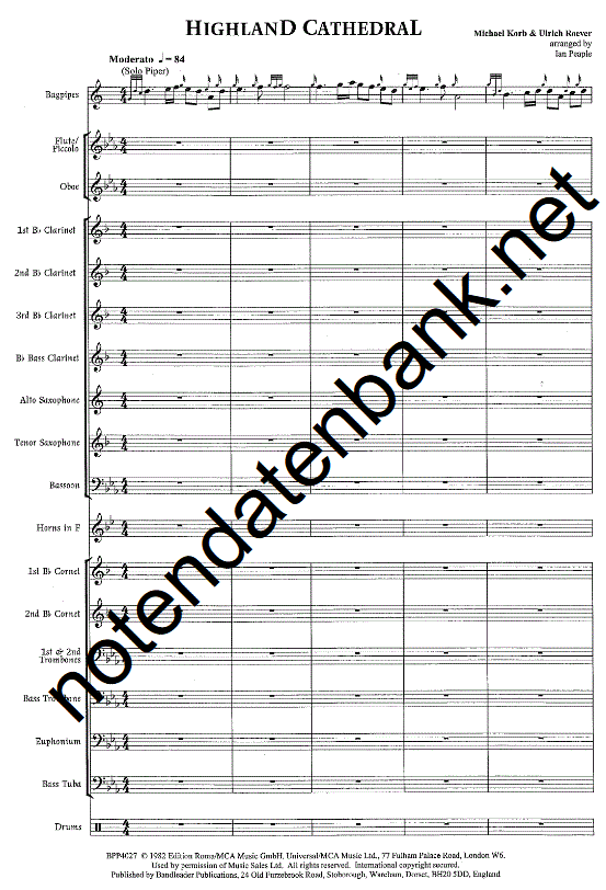 Zusatzinfo/Inhalt Ein moderner Klassiker, der seit Mitte der 1980er Jahre bei den Pipers beliebt ist. Dieses ausgezeichnete Arrangement stammt von Ian Peaple, einem ehemaligen Bandmaster der Black Watch.
