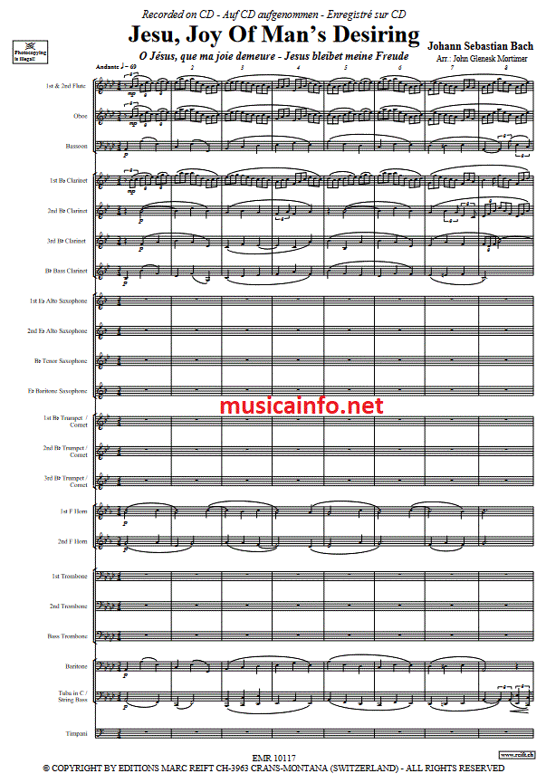 Jesu, Joy of Man's Desiring - hier klicken Jesu, Joy of Man's Desiring (Blasorchester; oder; Fanfarenorchester), Partitur
