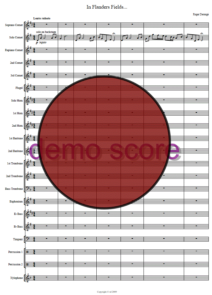 Roger Derongés Komposition In Flanderns Feldern beginnt friedlich, im Frühjahr 1914 in der belgischen Westhoek, zu einer Zeit, in der alles noch scheinbar ruhig ist. Diese Ruhe ist nur eine Illusion, denn nach der Ermordung von Franz Ferdinand, dem Thronfolger Österreich-Ungarns, ist die Spannung in ganz Europa zu spüren.