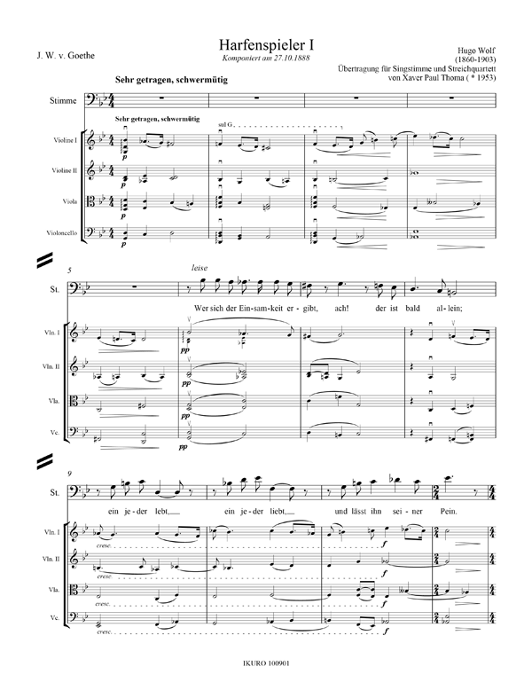 Lieder (Hugo Wolf) übertragen für Stimme und Streichquartett - Notenbeispiel