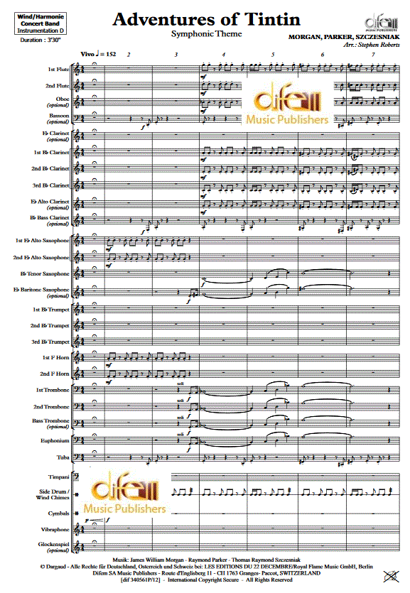 Adventures of Tintin - Symphonic Theme - Notenbeispiel