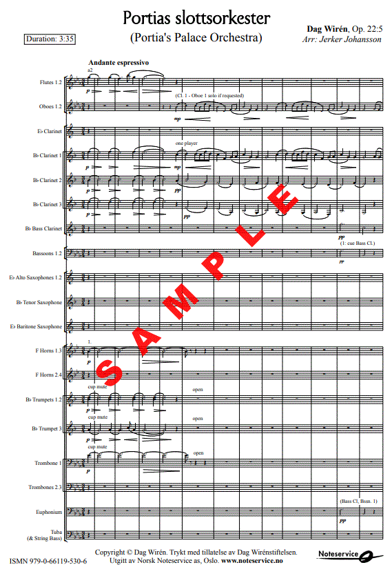 Portias Slottsorkester (Portias Palace Orchestra) - Notenbeispiel