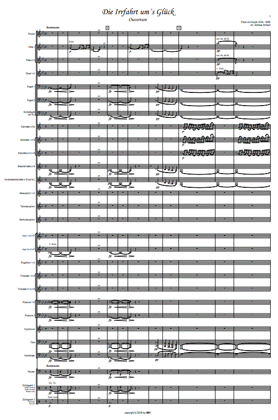 Die Irrfahrt um's Glück (Blasorchester), Partitur