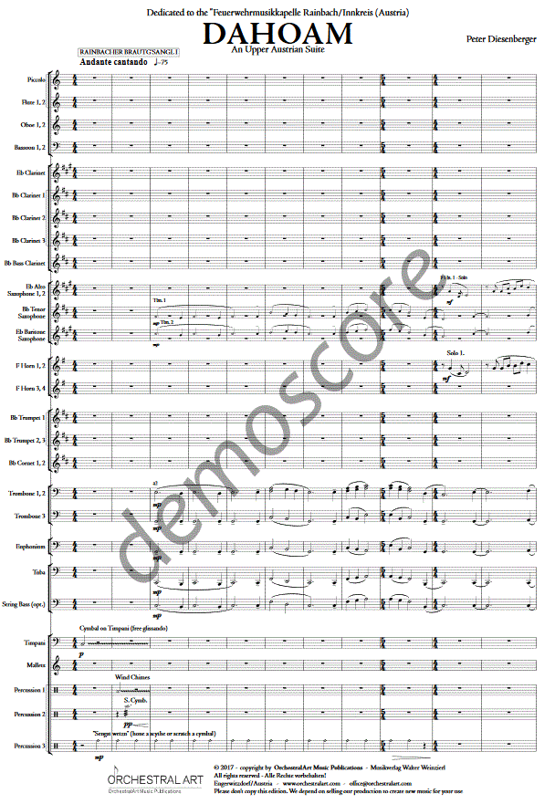 Zusatzinfo/Inhalt Das Stück „Dahoam - An Upper Austrian Suite“ ist eine Sammlung und Bearbeitung oberösterreichischer Volksmusik.