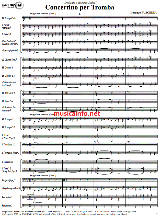 Zusatzinfo/Inhalt Bei der Komposition "Concertino für Trompete" handelt es sich um eine mittelschwere Aufgabe für die Band, wobei der Solopart so angelegt ist, dass er von einem guten Instrumentalisten bewältigt werden kann. Das Stück gliedert sich in die klassischen 3 Sätze (Allegro – Andante – Allegro): im ersten wird die Klangcharakteristik der Trompete hervorgehoben, im zweiten die Ausdruckskraft, während wir im dritten einen virtuoseren Satz finden. Im letzten Teil wurde eine Kadenz eingefügt, in der alle in der Komposition enthaltenen Themen in der Reihenfolge ihres Erscheinens erneut vorgeschlagen werden.