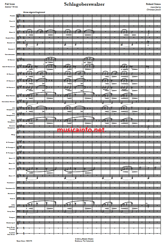 Zusatzinfo/Inhalt „Schlagobers“ („Schlagsahne“), Op. 70, ist ein Ballett in zwei Akten mit einem Libretto und einer Partitur von Richard Strauss. Es wurde 1921–22 komponiert und am 9. Mai 1924 an der Wiener Staatsoper uraufgeführt. Obwohl sowohl das Ballett als auch die später zusammengestellte Suite kein uneingeschränkter Erfolg waren, enthielt das Ballett laut Kritikern zumindest einen hervorragenden Walzer. Heutzutage finden wir diesen „Schlagoberswalzer“ regelmäßig auf allen großen Konzertbühnen und er macht seinem Titel alle Ehre. Der niederländische Arrangeur Christiaan Janssen hat diesen wunderschönen Walzer nun für Symphonic Band transkribiert.
