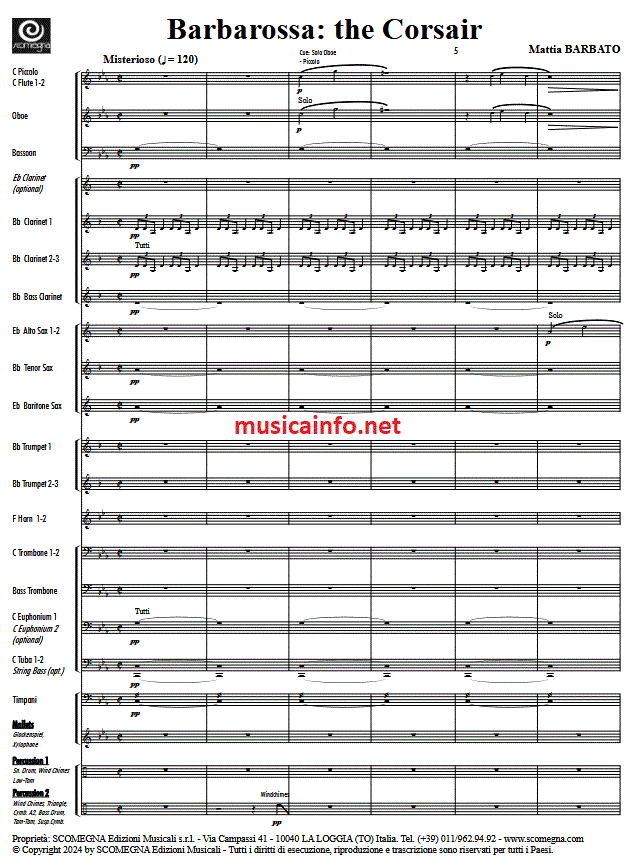 Zusatzinfo/Inhalt „Barbarossa: der Korsar“ ist ein Stück, das von Khayr al-Din Barbarossa, dem berühmten Admiral des 16. Jahrhunderts, inspiriert ist. Die Komposition wechselt zwischen introspektiven Momenten und energiegeladenen Passagen und erzählt von seinen legendären Taten. Nach einem sanften Eingangsthema, das die Verbundenheit mit dem Meer heraufbeschwört, entfaltet sich eine rhythmische Fuge, die die Hektik der Schlachten nachbildet. Ein Piratenchor führt melancholische Töne ein, die sich zu einer epischen Hymne entwickeln. Die Legende seines „vorgetäuschten Todes“ spiegelt sich in diesem Stück wider und vermittelt die Vorstellung, dass Barbarossas Taten noch heute zwischen den Wellen des Mittelmeers nachhallen.