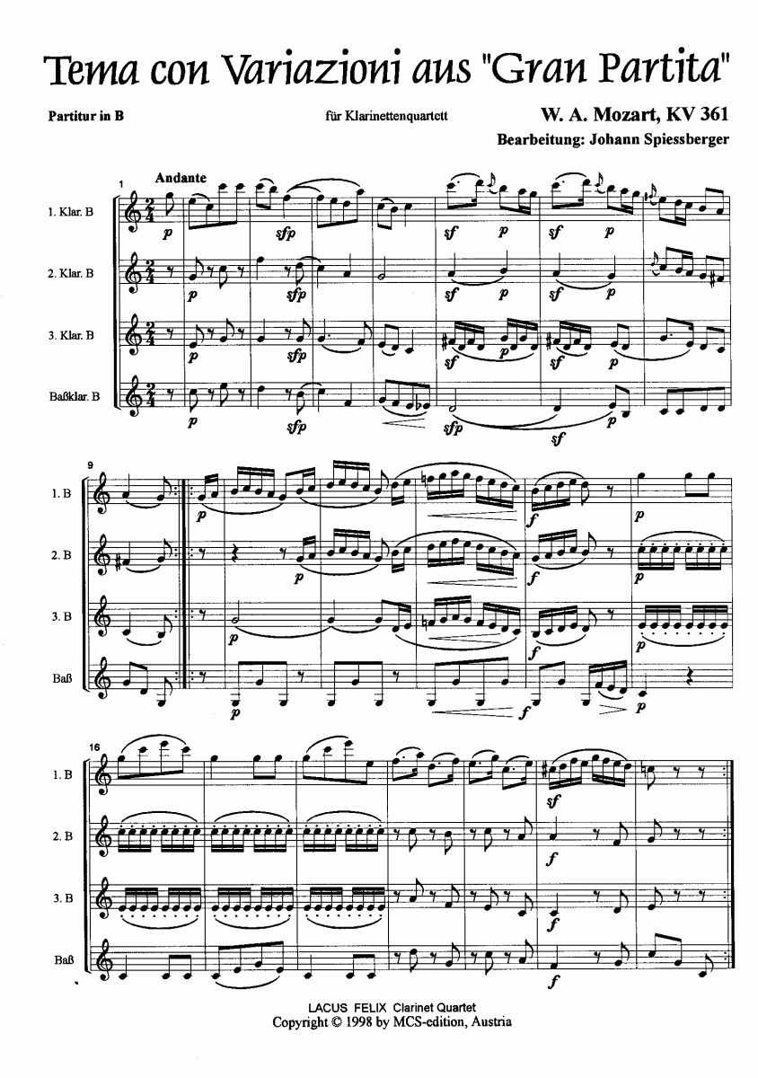 Gran Partita: 6. Satz Tema con Variazioni (Andante) - Notenbeispiel