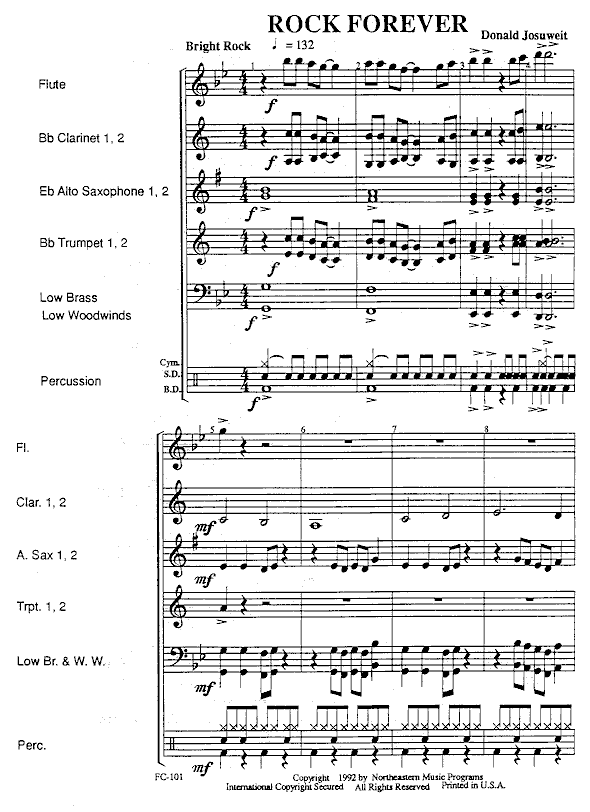 Zusatzinfo/Inhalt A fun piece designed to teach easy syncopation. A driving rock rhythm that your band will want to play over and over again. 1st trumpet's highest note is E.
