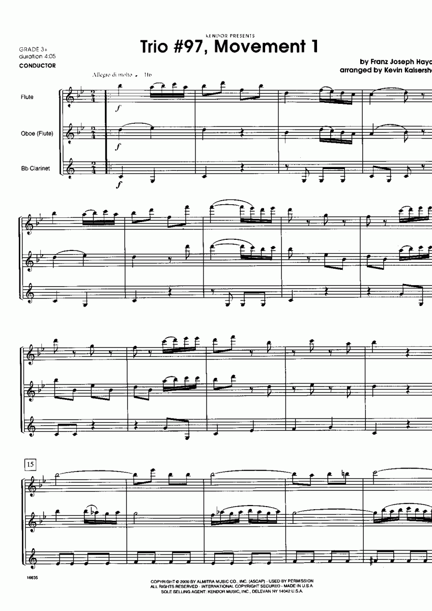 Originally written by Haydn for baryton and strings for his patron, Prince Nikolaus Esterhazy, this arrangement for mixed woodwinds calls for flute, oboe (or flute), and Bb clarinet.